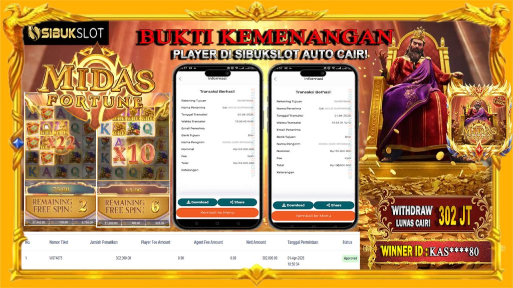 Bukti Kemenangan 01 APRIL 2026 Di Game Midas Fortune 302 JUTA
