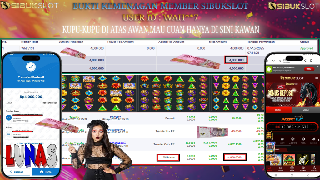 Situs SIBUKSLOT merupakan slot online yang membayar semua kemenangan member hingga lunas. Setiap pembayaran pada situs kami dilakukan dengan cara transfer ke rekening tujuan yang sudah di daftarkan pada situs slot online kami, Pembayaran hanya dapat di proses jika rekening yang di daftarkan telah valid dan dapat di transfer. Semua kemenangan member yang mendapatkan hadiah jackpot terbesar akan kami posting agar semua pemain dapat melihat situs gacor dan terpercaya SIBUKSLOT ini membayar semua kemenangan member hingga lunas. Setiap postingan yang kami posting akan kami lakukan sensor pada nomor rekening 4 digit dan nama rekening untuk menjaga privasi dan kerahasiaan member. Postingan Jackpot yang kami posting agar member atau pemain yang belum pernah bermain bisa melihat kemenangan member Situs Terpercaya Seperti SIBUKSLOT ini, Semua postingan jackpot yang kami posting dapat di lihat data keasliannya melalui nomor reff yang di tunjukan pada bank atau mbanking saat kita melakukan transfer.