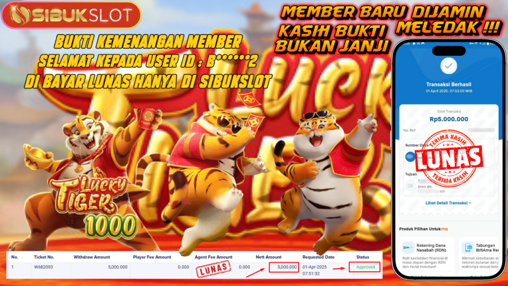 Bukti Kemenangan 1 April 2025 Di Game Lucky Tiger 1000 WD 5 Juta