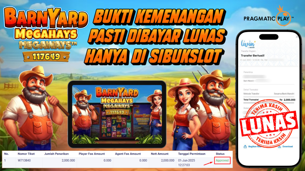 Bukti Kemenangan 1 Juni 2025 Di Game Barnyard Megahays Megaways WD 2 Juta
