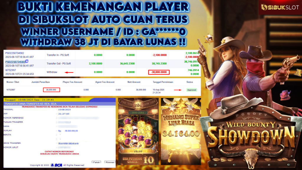 Bukti Kemenangan 10 Agustus 2025 Di Game Wild Bounty Showdown WD 38 Juta