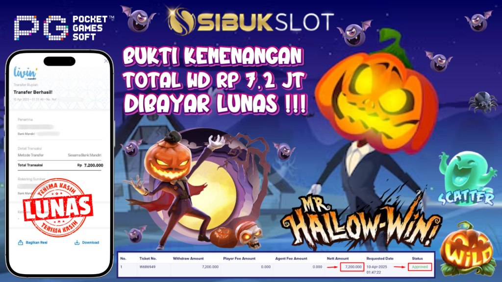 Bukti Kemenangan 10 April 2025 Di Game Mr. Hallow-Win WD 7.2 Juta