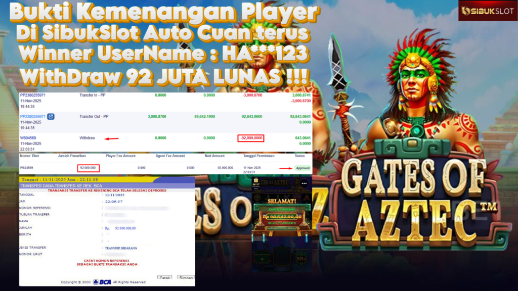 Bukti Kemenangan 11 November 2025 Di Game Gates of Aztec 92 Juta