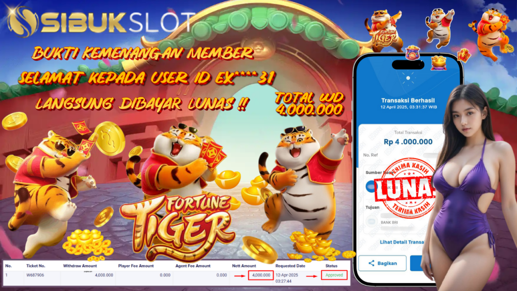 Bukti Kemenangan 12 April 2025 Di Game Fortune Tiger WD 4 Juta