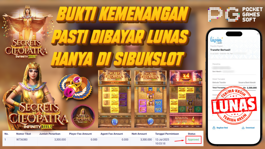 Bukti Kemenangan 12 Juli 2025 Di Game Secret of Cleopatra WD 3.3 Juta