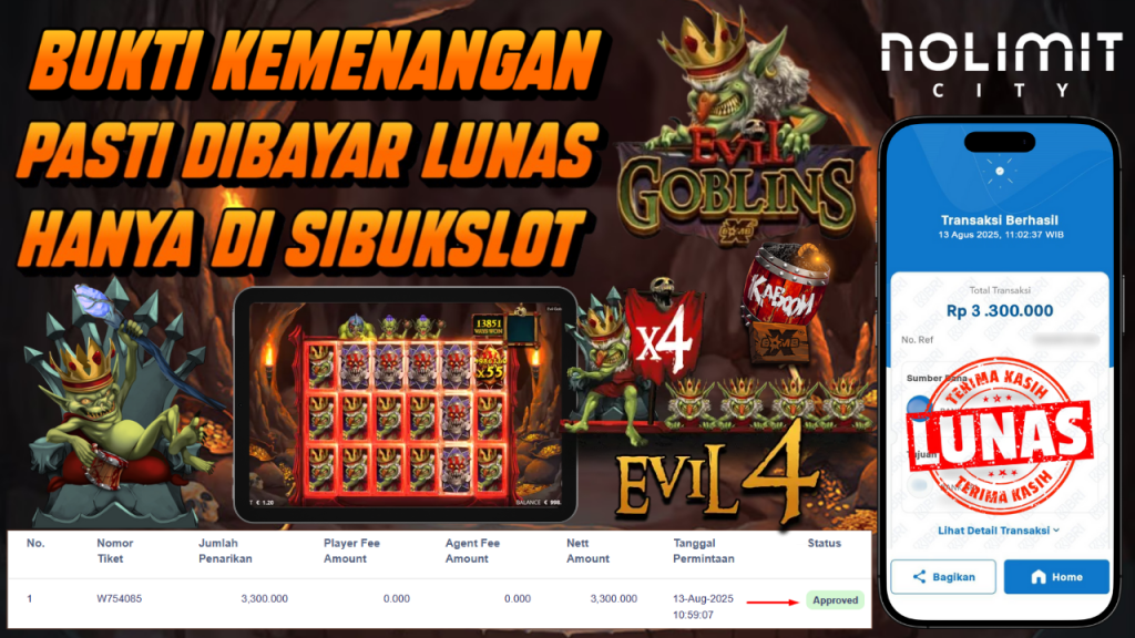 Bukti Kemenangan 13 Agustus 2025 Di Game Evil Goblins xBomb WD 3.3 Juta