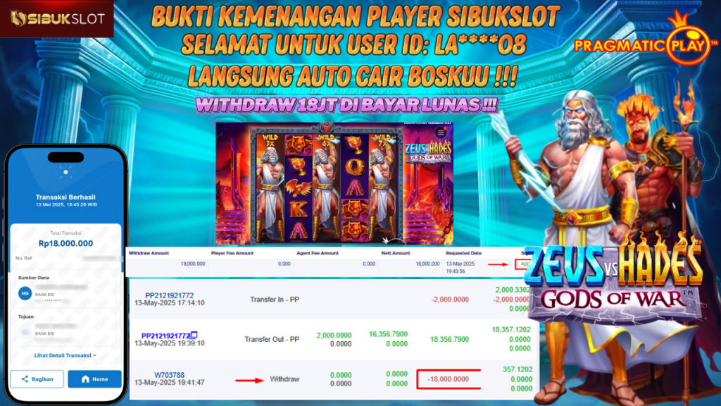 Bukti Kemenangan 13 Mei 2025 Di Game Zeus vs Hades – Gods of War WD 18 Juta