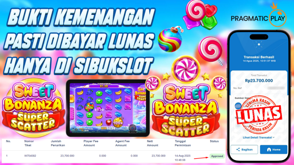 Bukti Kemenangan 14 Agustus 2025 Di Game Sweet Bonanza Super Scatter WD 23.7 Juta