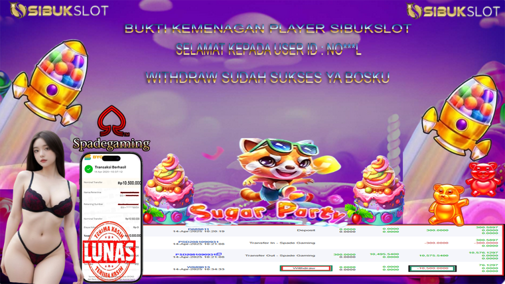 Bukti Kemenangan 14 April 2025 Di Game Sugar Party WD 10.5 Juta