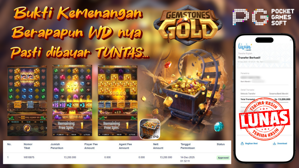 Bukti Kemenangan 14 Desember 2025 Di Game Gemstones Gold 13.2 Juta