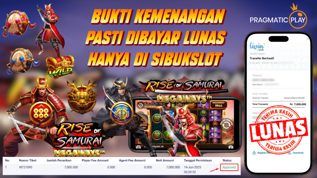 Bukti Kemenangan 14 Juni 2025 Di Game Rise of Samurai Megaways WD 7 Juta