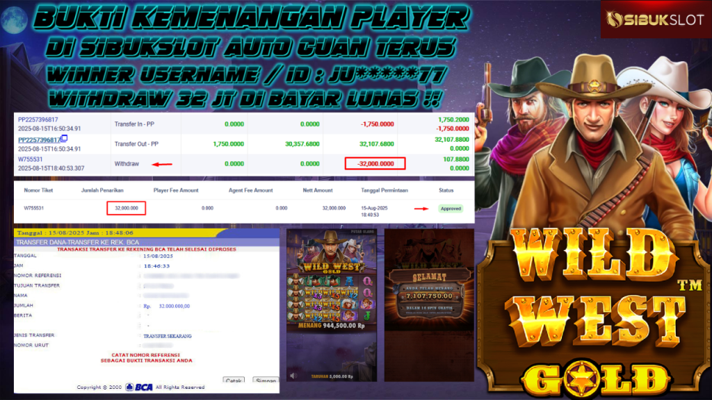 Bukti Kemenangan 15 Agustus 2025 Di Game Wild West Gold WD 32 Juta
