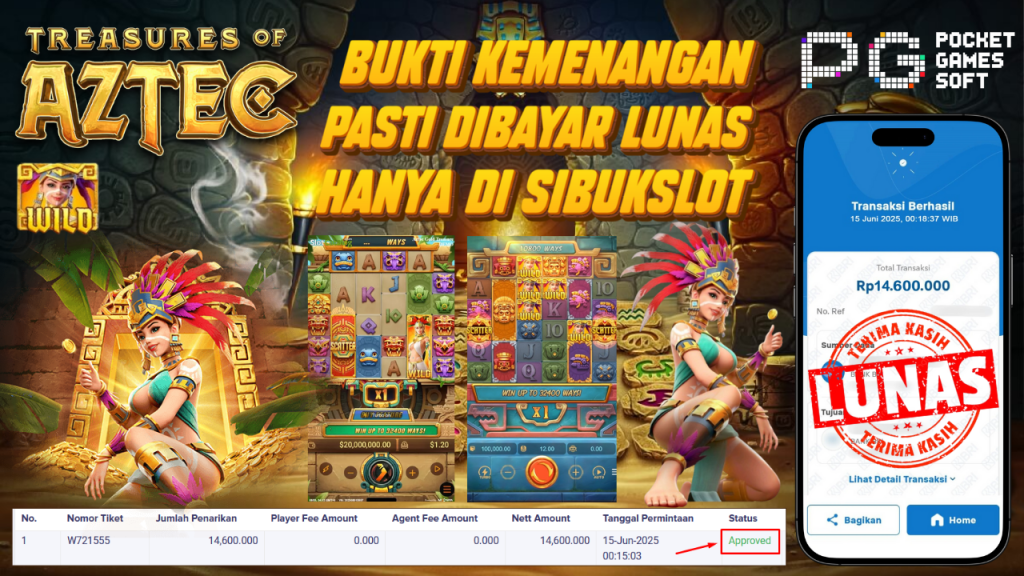 Bukti Kemenangan 15 Juni 2025 Di Game Treasures of Aztec WD 14.6 Juta