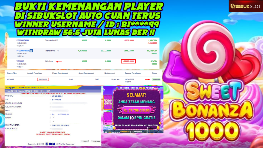 Bukti Kemenangan 15 Oktober 2025 Di Game Sweet Bonanza 1000 56.6 Juta