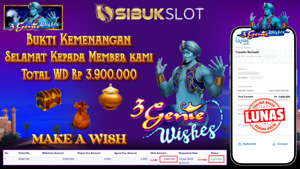 Bukti Kemenangan 16 April 2025 Di Game 3 Genie Wishes WD 3.9 Juta