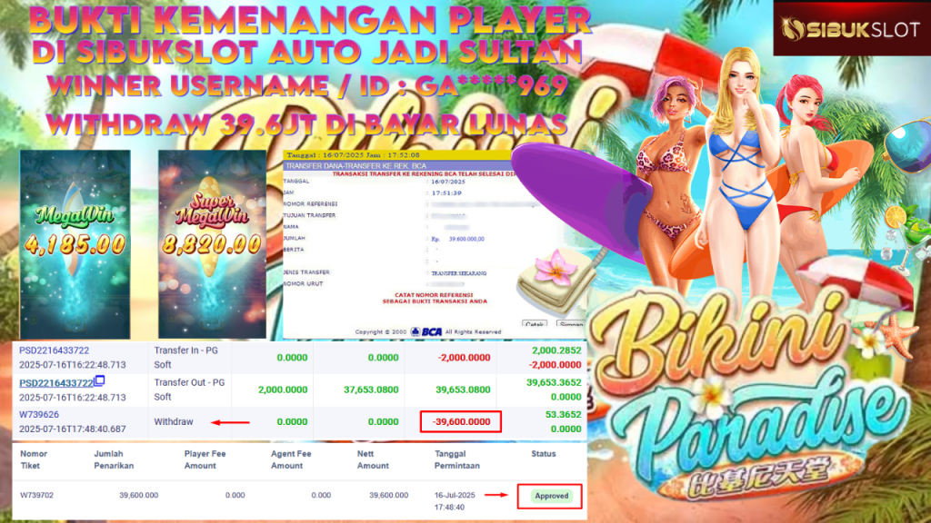 Bukti Kemenangan 16 Juli 2025 Di Game Bikini Paradise WD 39.6 Juta