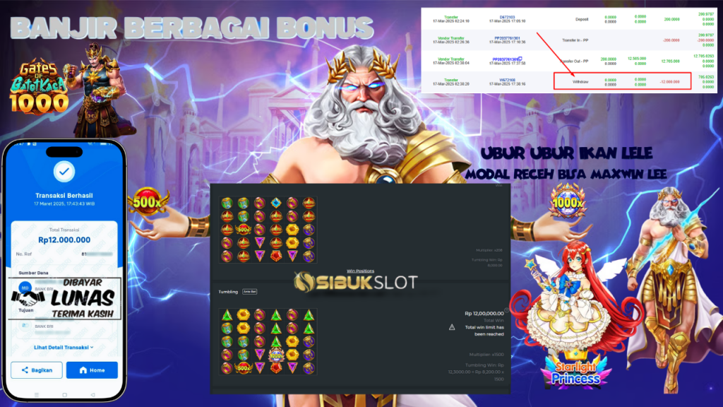 Bukti Kemenangan 17 Maret 2025 Di Game Gates of Olympus 1000 WD 12 Juta