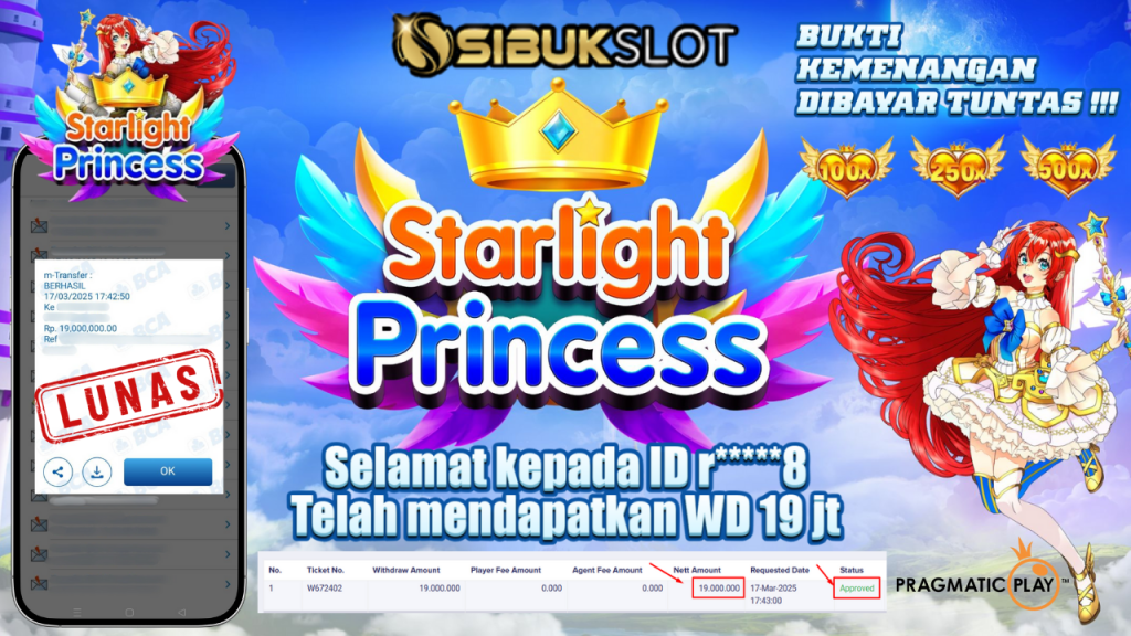 Bukti Kemenangan 17 Maret 2025 Di Game PP Starlight Princess WD 19 Juta