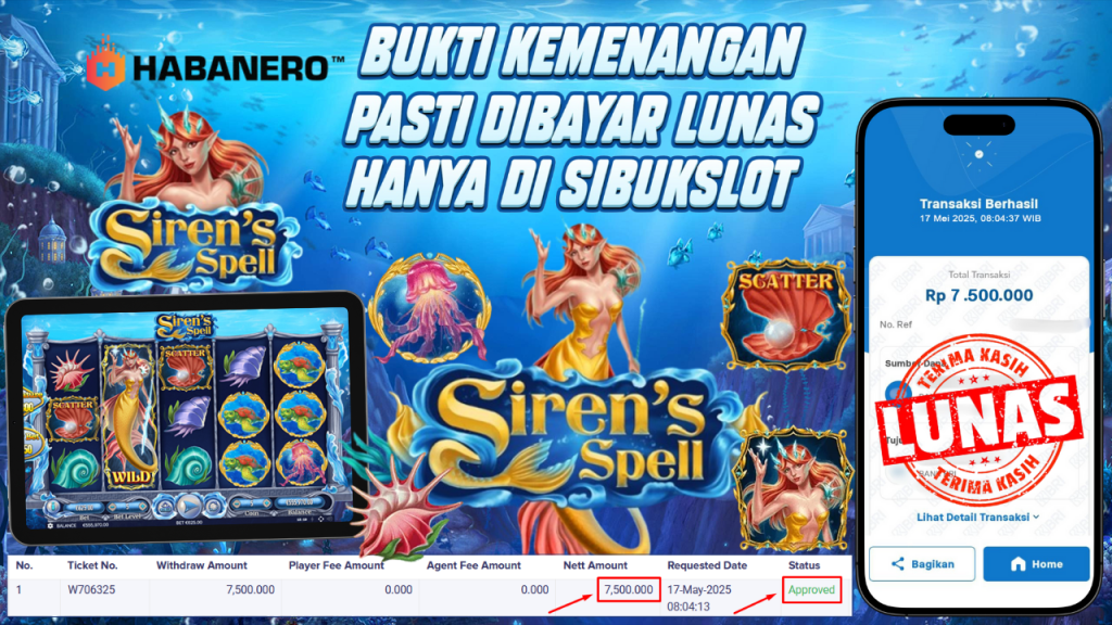 Bukti Kemenangan 17 Mei 2025 Di Game Siren’s Spell WD 7.5 Juta