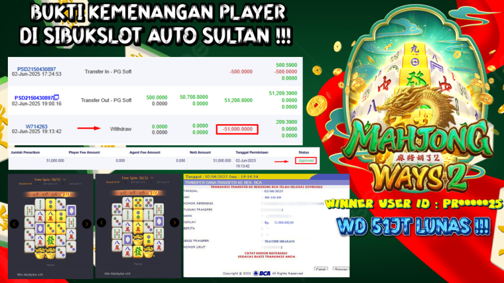 Bukti Kemenangan 2 Juni 2025 Di Game Mahjong Ways 2 WD 51 Juta