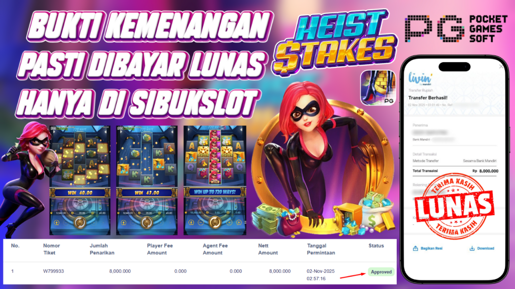 Bukti Kemenangan 2 November 2025 Di Game Heist Stakes 8 Juta
