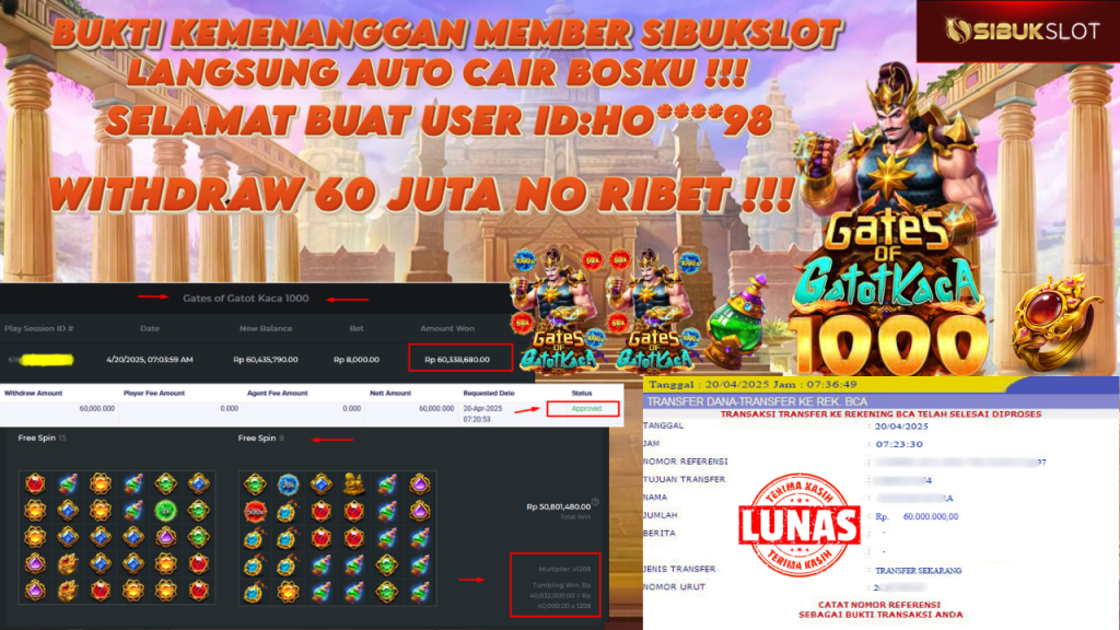Bukti Kemenangan 20 April 2025 Di Game Gates of Gatot Kaca WD 60 Juta
