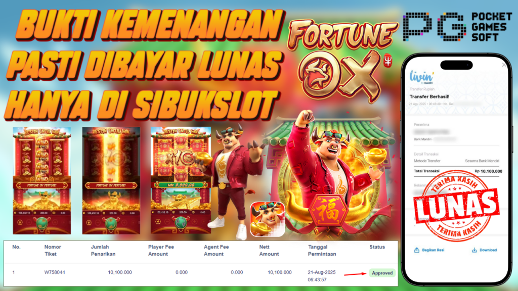 Bukti Kemenangan 21 Agustus 2025 Di Game Fortune Ox WD 10.1Juta