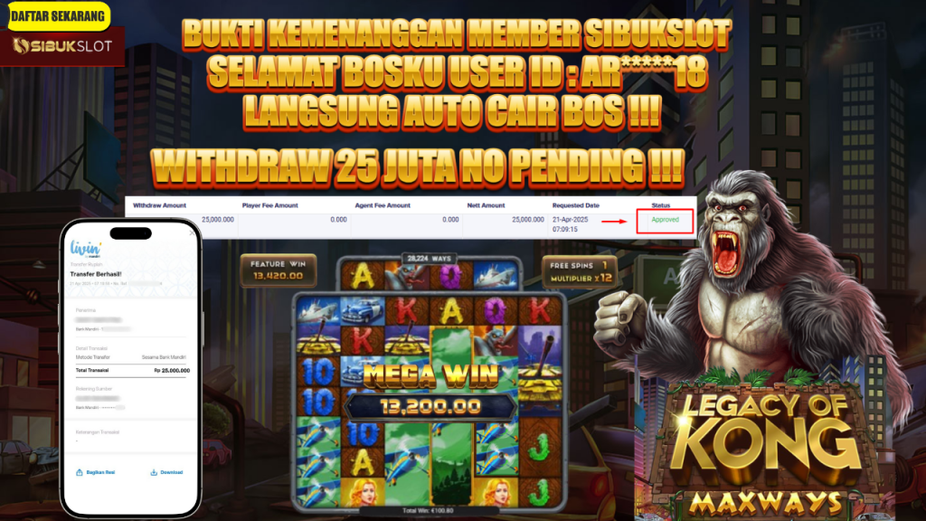 Bukti Kemenangan 21 April 2025 Di Game Legacy of Kong Maxways WD 25 Juta