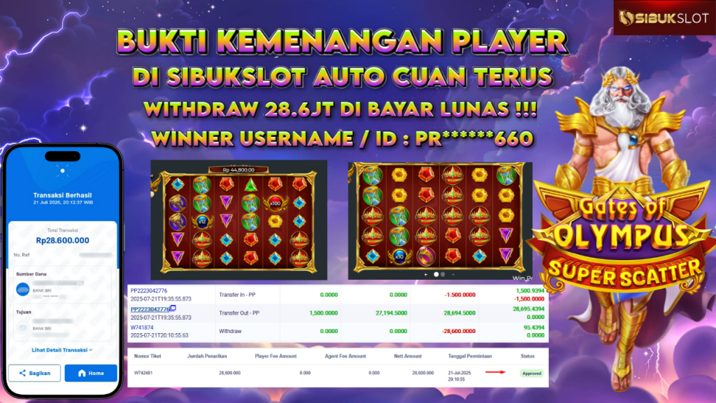 Bukti Kemenangan 21 Juli 2025 Di Game Gates of Olympus Super Scatter WD 28.6 Juta