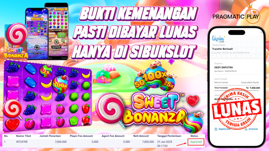 Bukti Kemenangan 21 Juni 2025 Di Game Sweet Bonanza WD 7 Juta