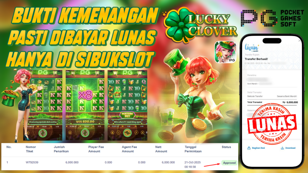 Bukti Kemenangan 21 Oktober 2025 Di Game Lucky Clover Riches 6 Juta