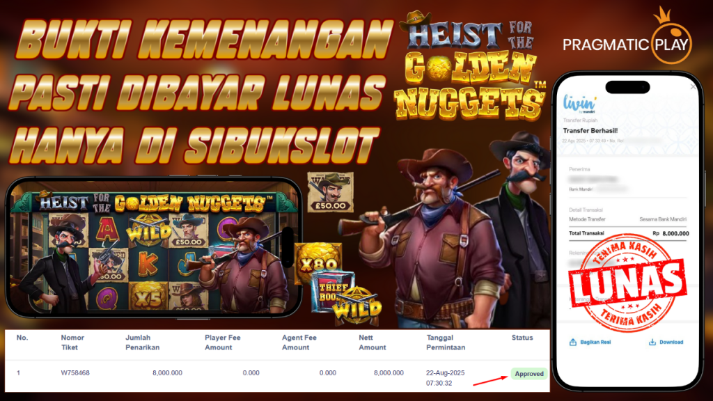 Bukti Kemenangan 22 Agustus 2025 Di Game Heist for the Golden Nuggets WD 8 Juta