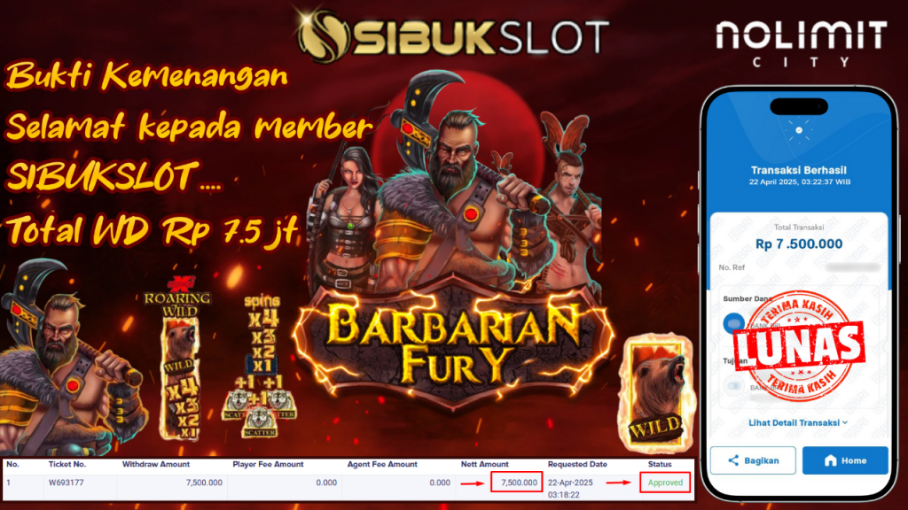 Bukti Kemenangan 22 April 2025 Di Game Barbarian Fury WD 7.5 Juta