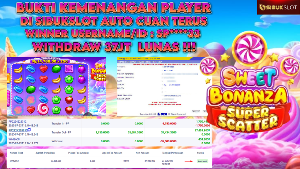 Bukti Kemenangan 23 Juli 2025 Di Game Sweet Bonanza Super Scatter WD 37 Juta