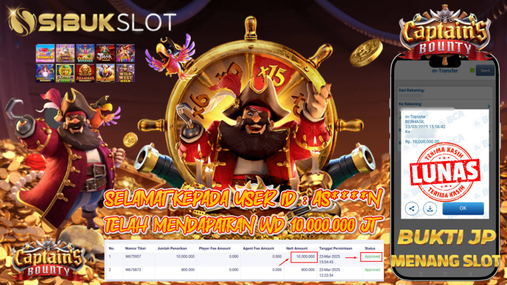 Bukti Kemenangan 23 Maret 2025 Di Game Captain Bounty WD 10 Juta