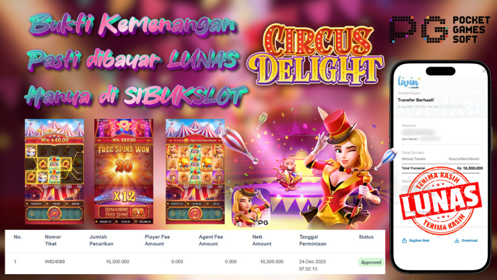 Bukti Kemenangan 24 Desember 2025 Di Game Circus Delight 16.5 Juta