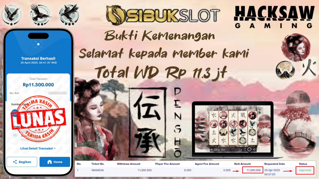 Bukti Kemenangan 25 April 2025 Di Game Densho WD 11.3 Juta