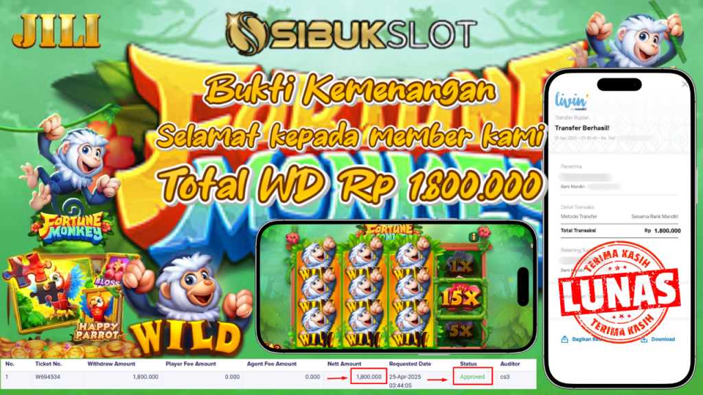 Bukti Kemenangan 25 April 2025 Di Game Fortune Monkey WD 1.8 Juta