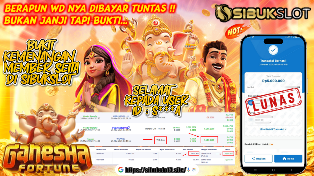 Bukti Kemenangan 25 Maret 2025 Di Ganesha Fortune Game WD 5 Juta