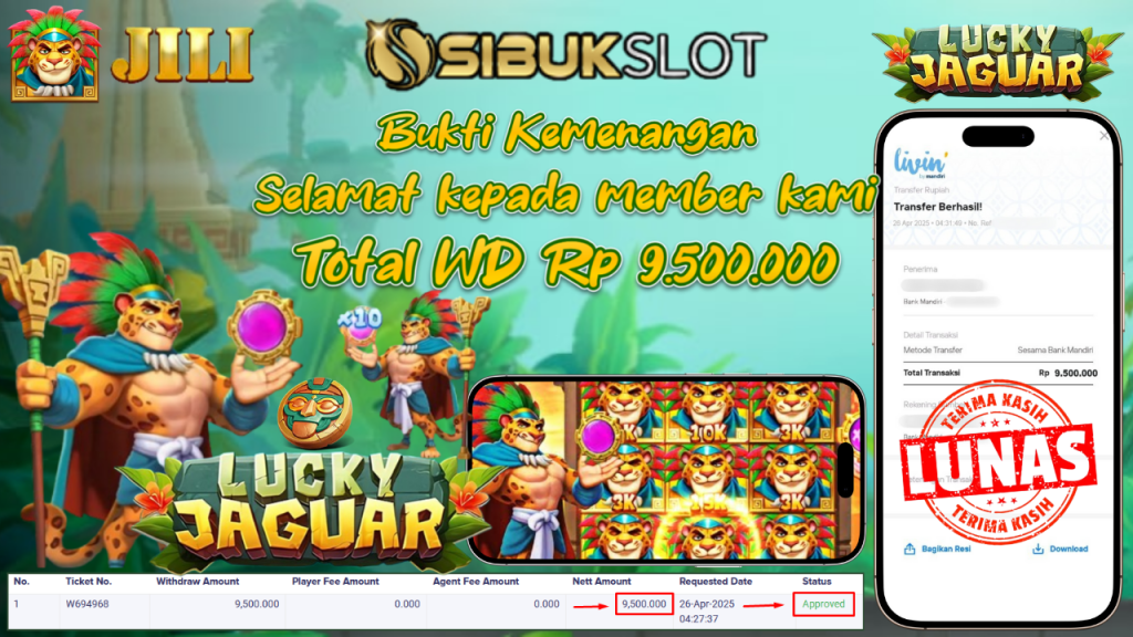 Bukti Kemenangan 26 April 2025 Di Game Lucky Jaguar WD 9.5 Juta