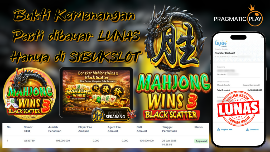 Bukti Kemenangan 26 Januari 2026 Di Game Mahjong Wins 3 – Black Scatter 106 Juta