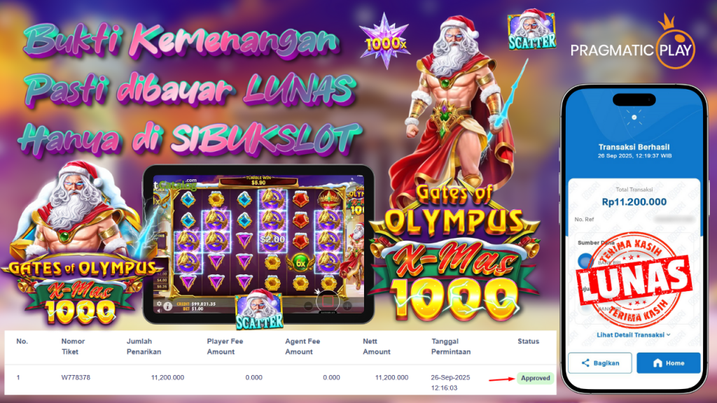 Bukti Kemenangan 26 September 2025 Di Game Gates of Olympus Xmas 1000 11.2 Juta