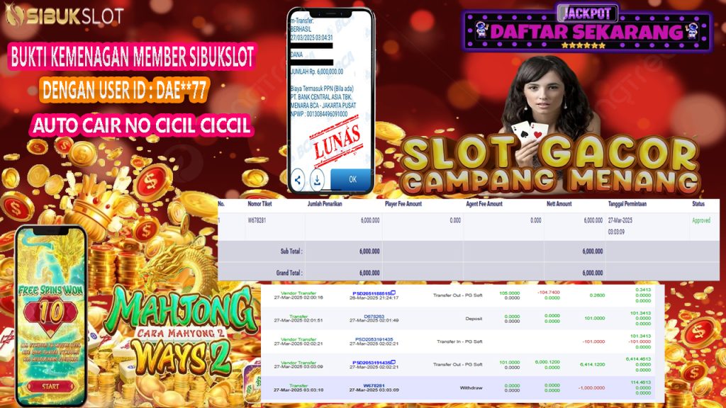 SIBUKSLOT – Slot Gacor & Casino pasti membayar kemenangan member sampai lunas tanpa dicicil