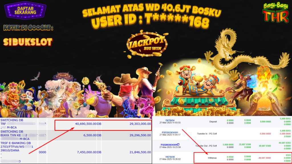 Situs SIBUKSLOT merupakan slot online yang membayar semua kemenangan member hingga lunas. Setiap pembayaran pada situs kami dilakukan dengan cara transfer ke rekening tujuan yang sudah di daftarkan pada situs slot online kami, Pembayaran hanya dapat di proses jika rekening yang di daftarkan telah valid dan dapat di transfer. Semua kemenangan member yang mendapatkan hadiah jackpot terbesar akan kami posting agar semua pemain dapat melihat situs gacor dan terpercaya SIBUKSLOT ini membayar semua kemenangan member hingga lunas. Setiap postingan yang kami posting akan kami lakukan sensor pada nomor rekening 4 digit dan nama rekening untuk menjaga privasi dan kerahasiaan member. Postingan Jackpot yang kami posting agar member atau pemain yang belum pernah bermain bisa melihat kemenangan member Situs Terpercaya Seperti SIBUKSLOT ini, Semua postingan jackpot yang kami posting dapat di lihat data keasliannya melalui nomor reff yang di tunjukan pada bank atau mbanking saat kita melakukan transfer.