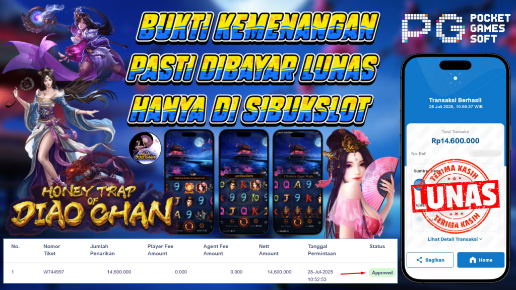 Bukti Kemenangan 28 Juli 2025 Di Game Honey Trap of Diao Chan WD 14.6 Juta