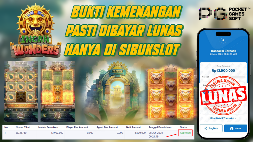 Bukti Kemenangan 28 Juni 2025 Di Game Incan Wonders WD 13.9 Juta