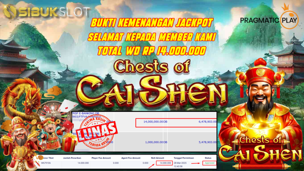 Bukti Kemenangan 28 Maret 2025 Di Game Chests OF Cai Shen WD 14 Juta