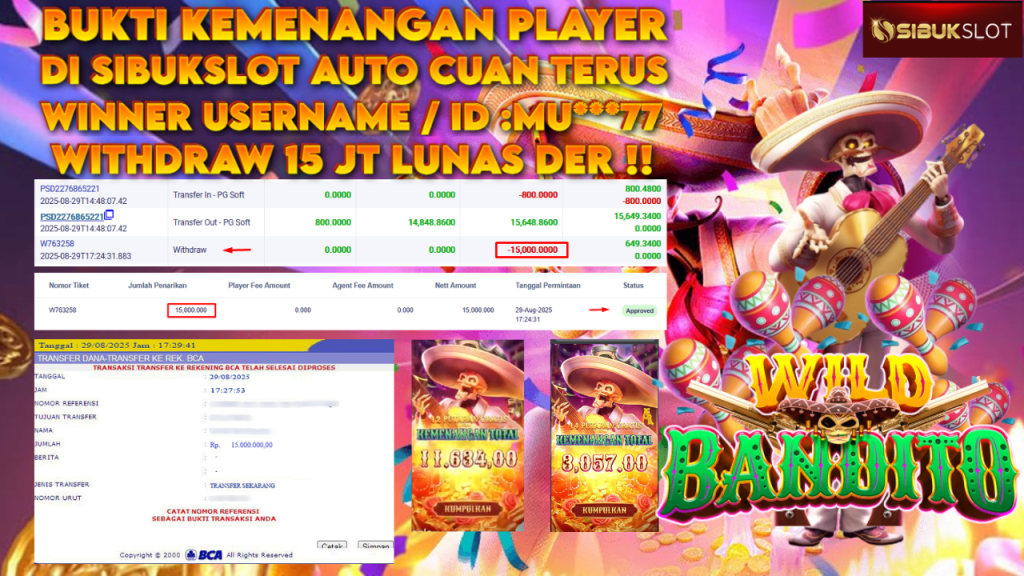 Bukti Kemenangan 29 Agustus 2025 Di Game Wild Bandito WD 15 Juta