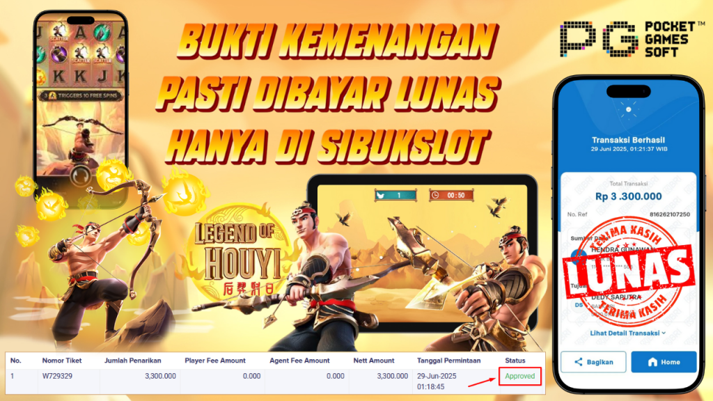 Bukti Kemenangan 29 Juni 2025 Di Game Legend of Hou Yi WD 3.3 Juta