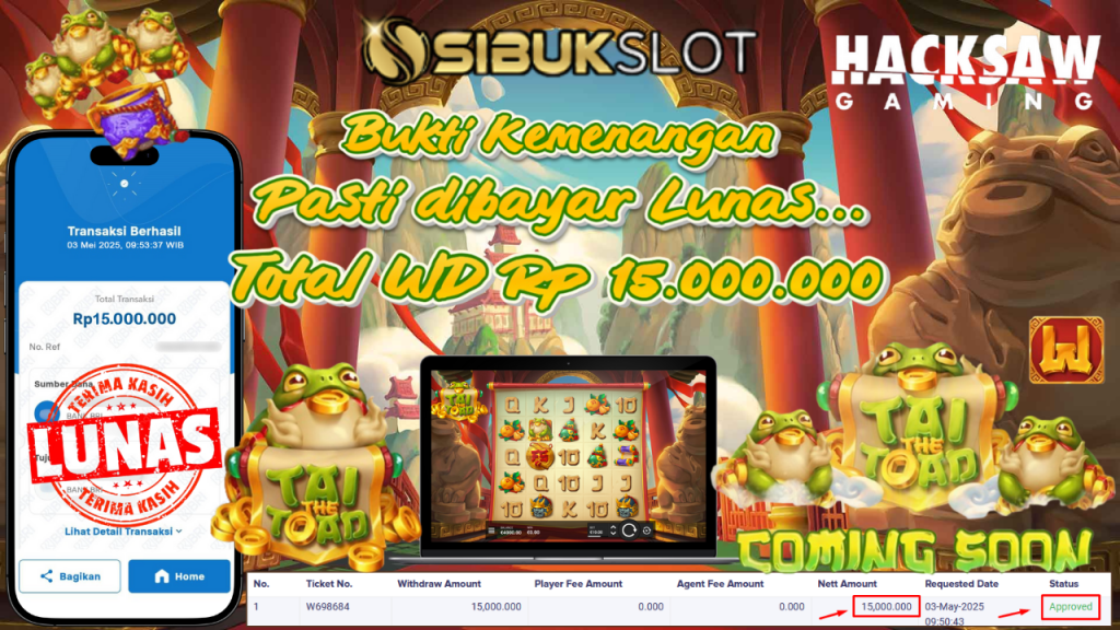 Bukti Kemenangan 3 Mei 2025 Di Game Tai The Toad WD 15 Juta